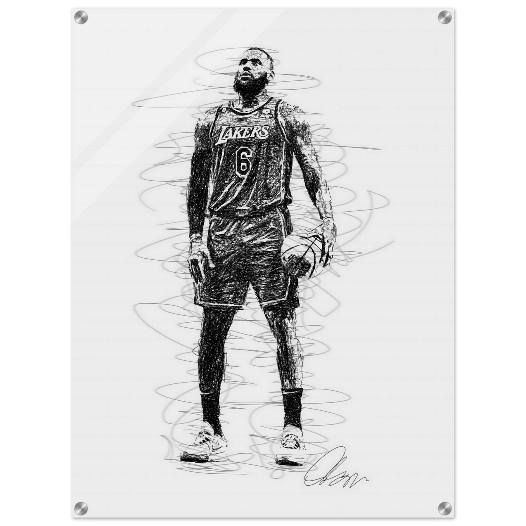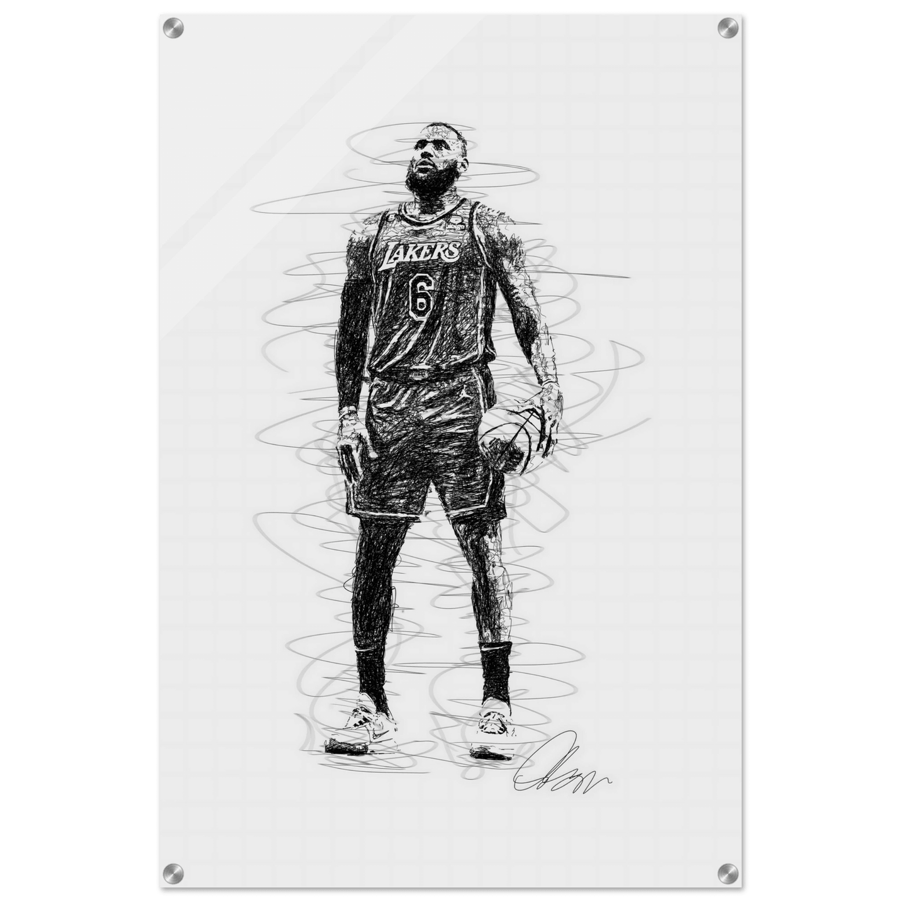 LeBron James Wall Art – Dynamic, Modern NBA Sketch Acrylic Print for Sports Fans