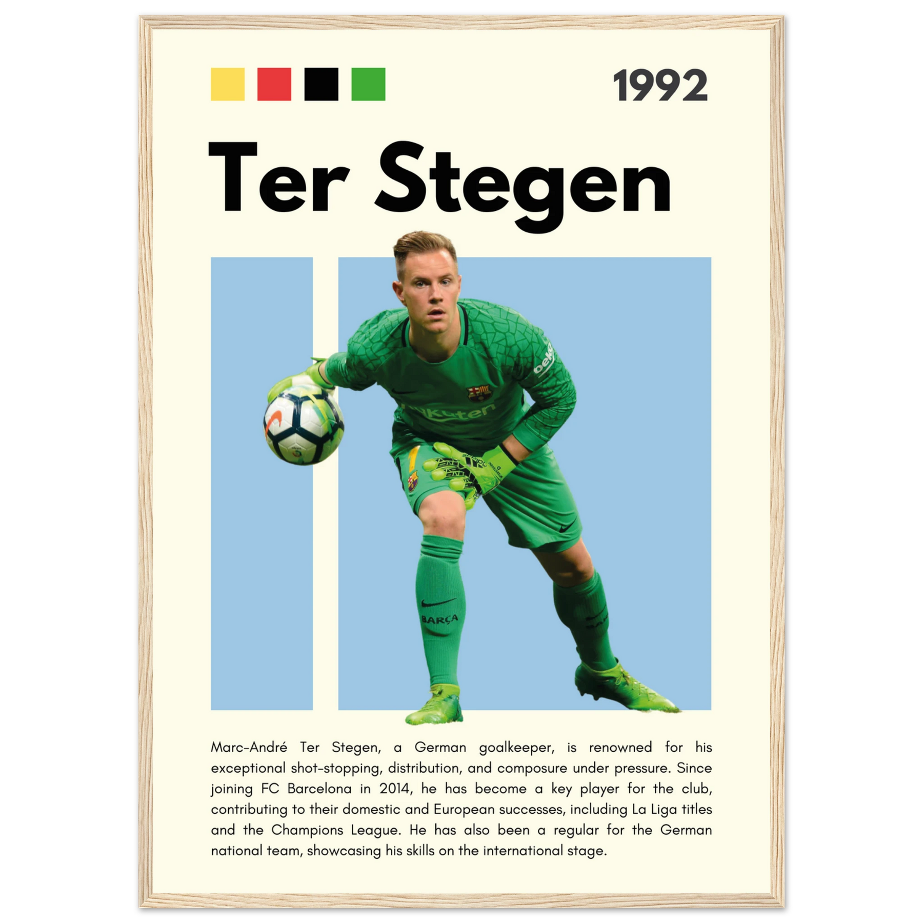 Each detail of this poster is crafted with the utmost care, ensuring that it not only looks spectacular but also will last for years to come. The durable frame, coupled with quality materials, ensures that this stunning representation of Ter Stegen’s excellence will be a treasured part of your collection.
