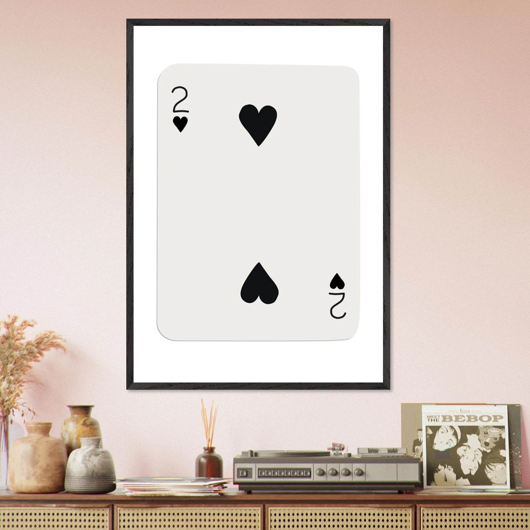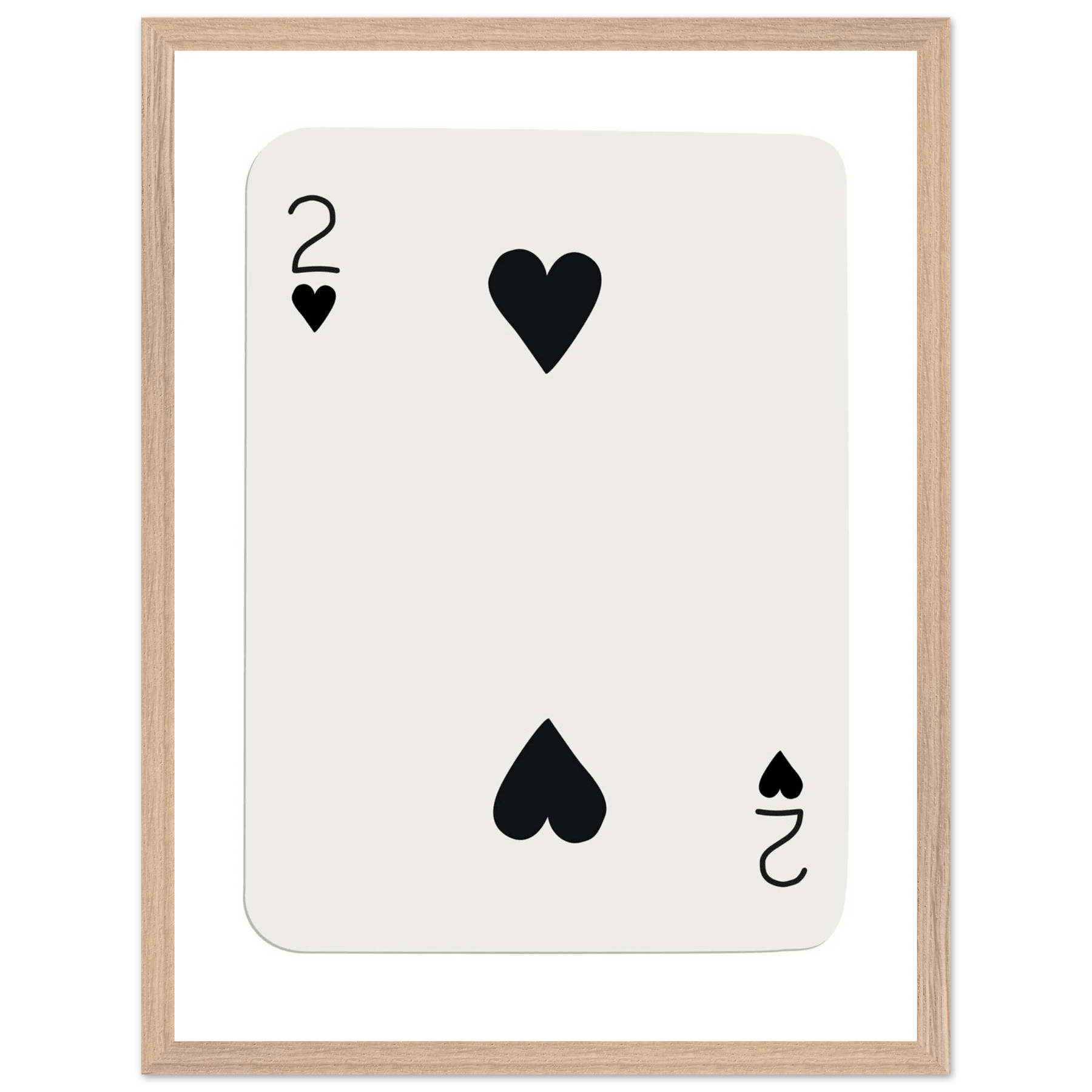 Minimalist Two of Hearts Poker Card Art Print - Framed Eco-Friendly Wooden Poster - Vibrantwalls