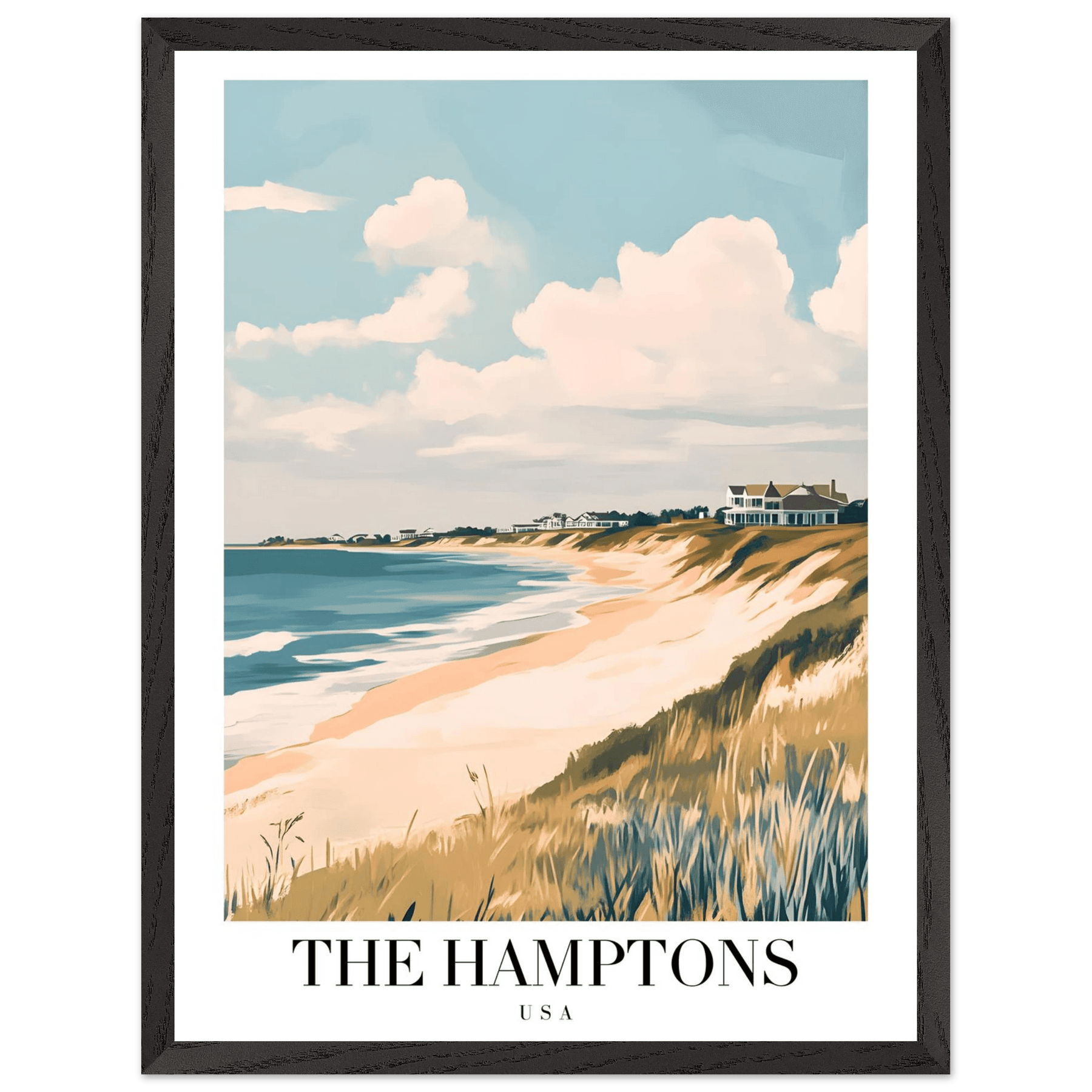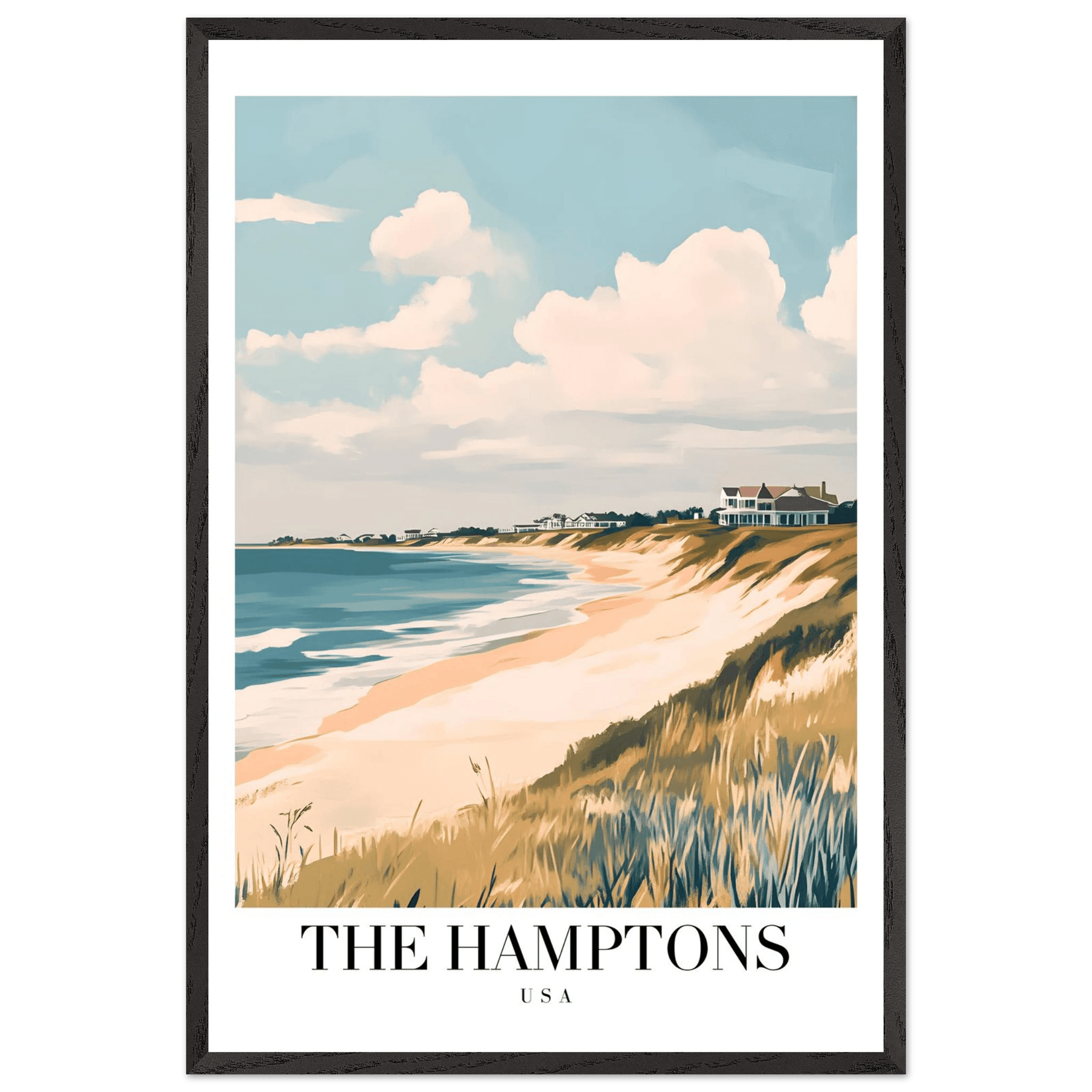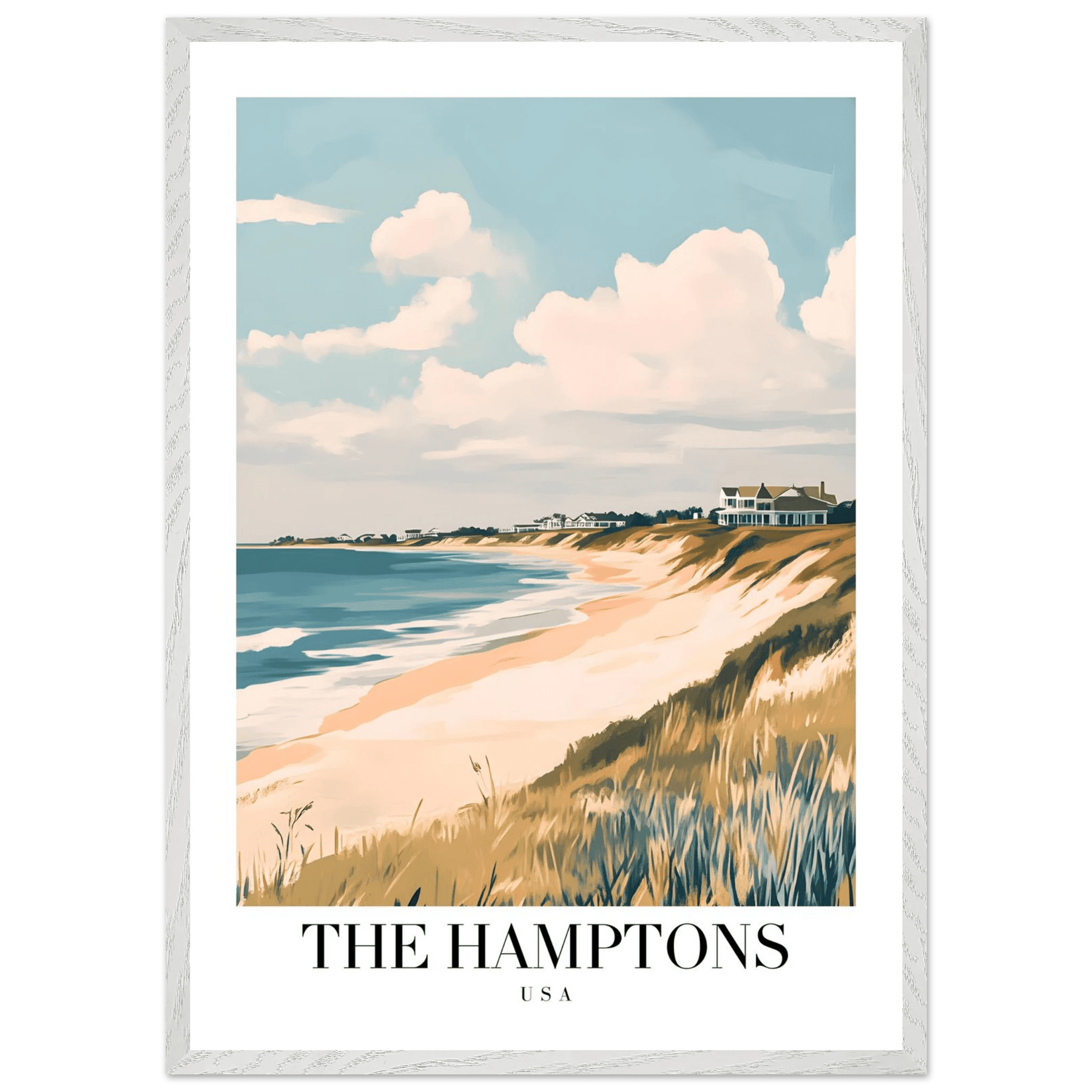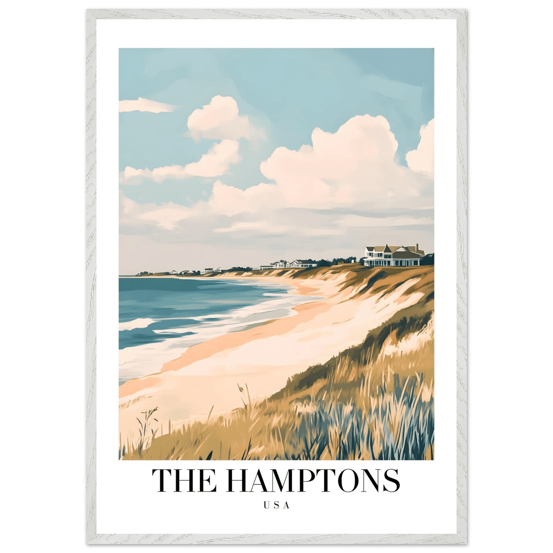 The Hamptons USA Framed Poster – Coastal Chic Vintage Travel Wall Art in Various Sizes & Frame Finishes